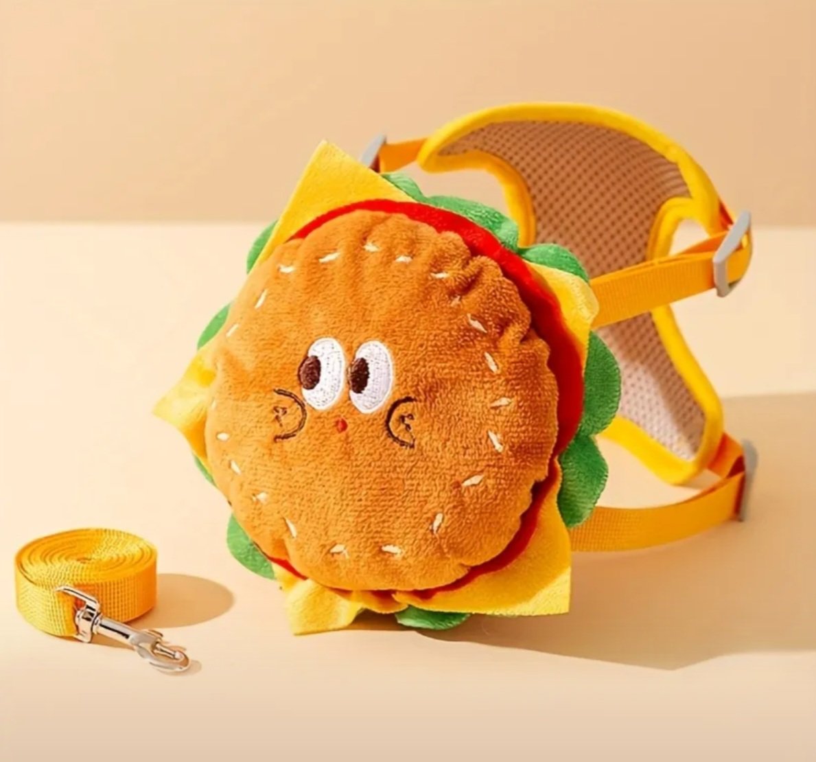 Arnés y correa con diseño de hamburguesa talla S