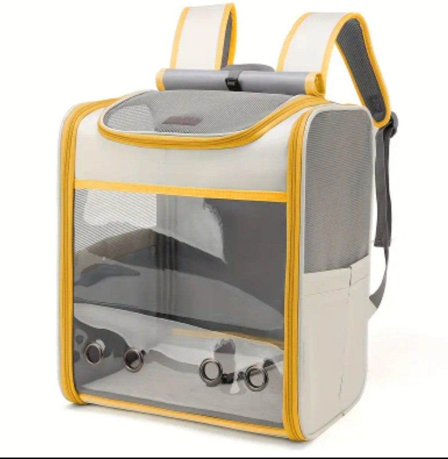 Mochila transportadora para mascotas espaciosa y portátil, con ventana transparente.