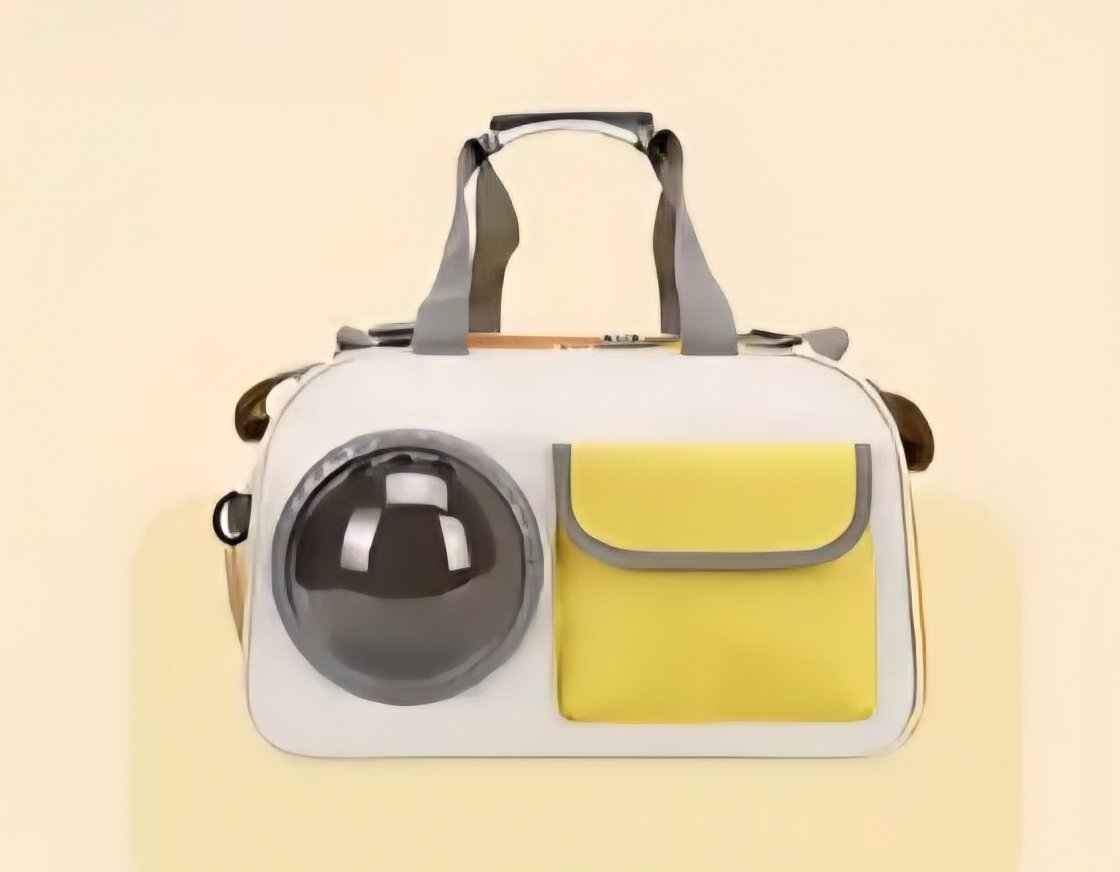 Mochila expansible para mascotas con ventana circular. Color amarillo