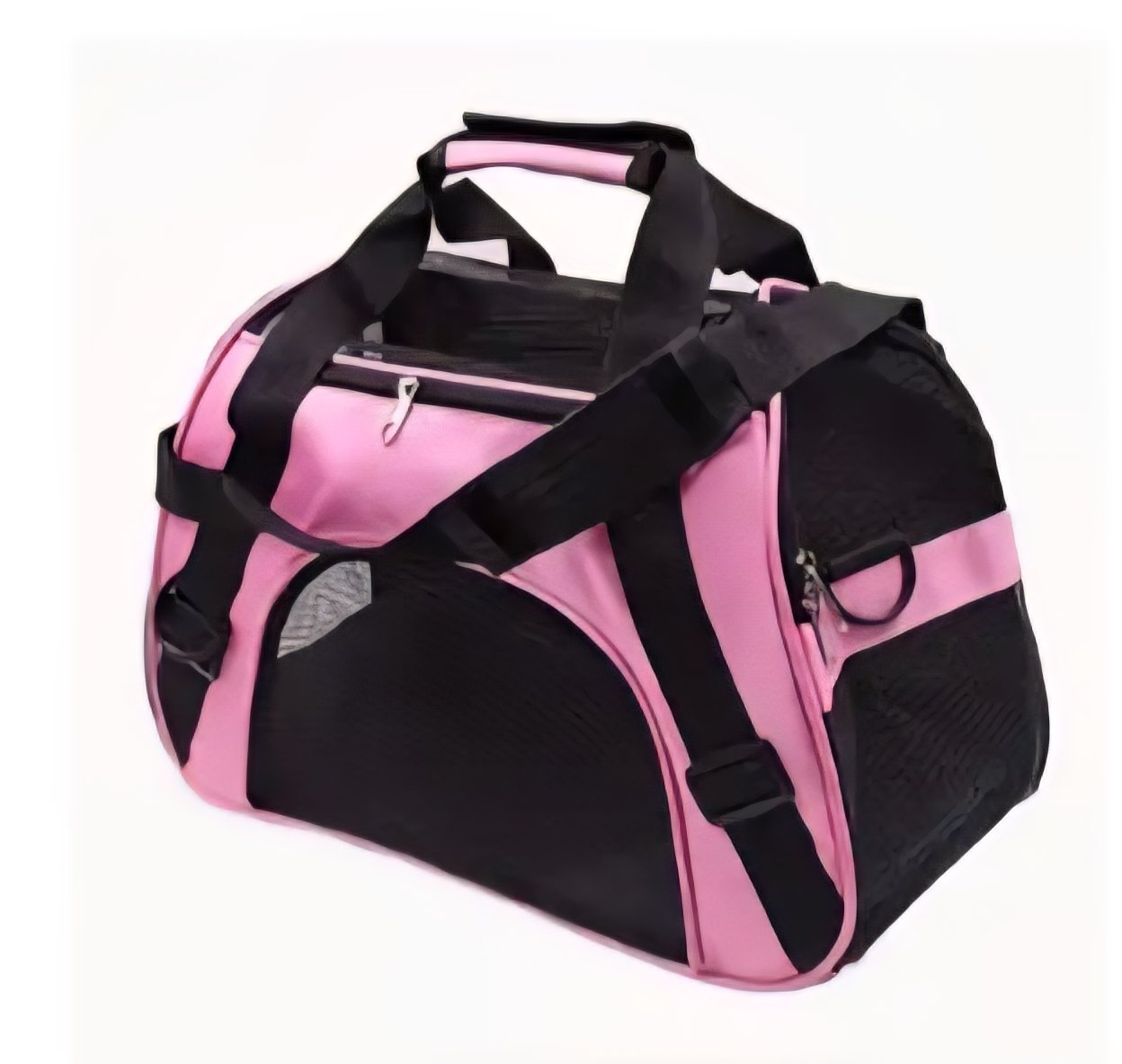 Transportador plegable para mascotas pequeñas. Color: rosa y negro