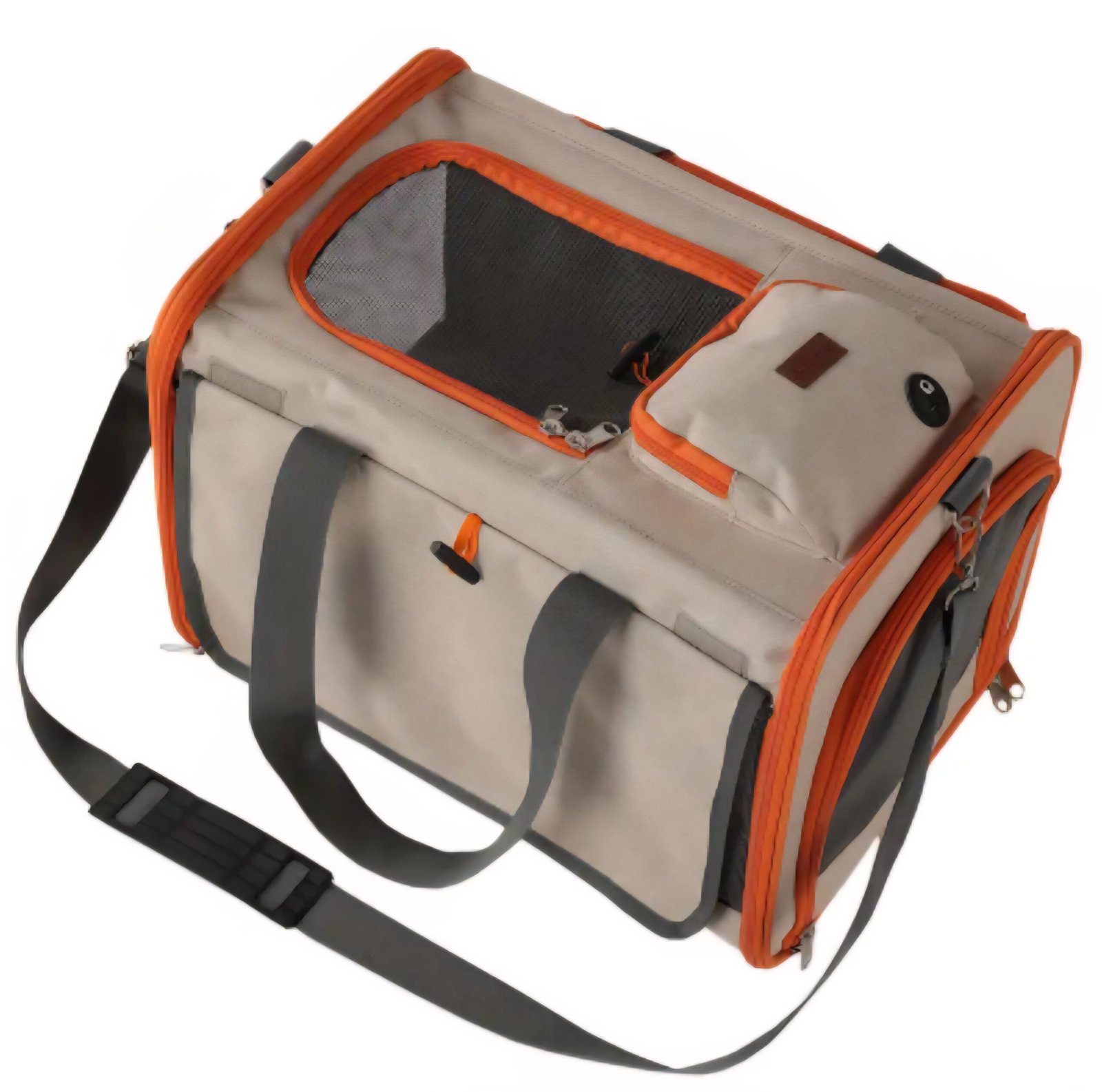 Transportador de mascotas con base suave y alchonada. Color: gris, naranja,caqui